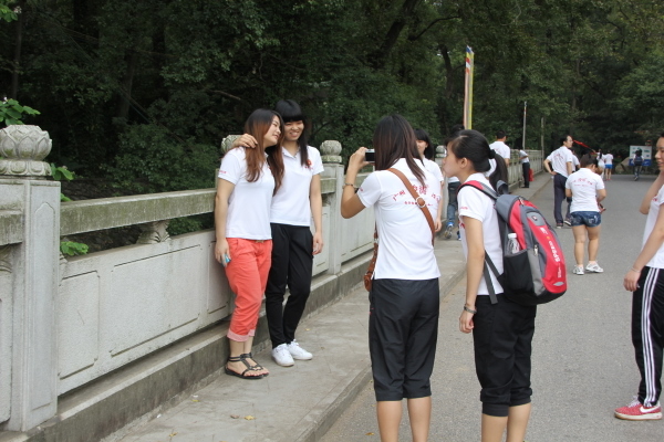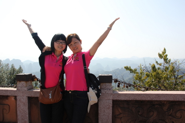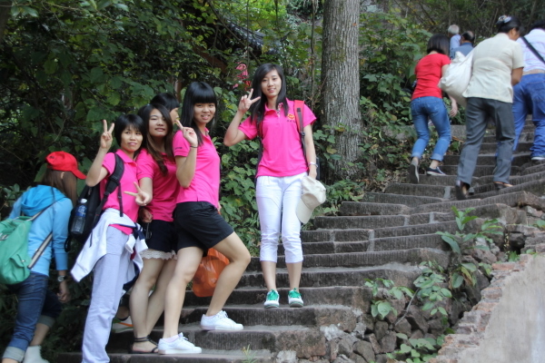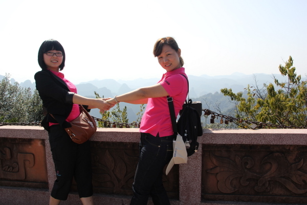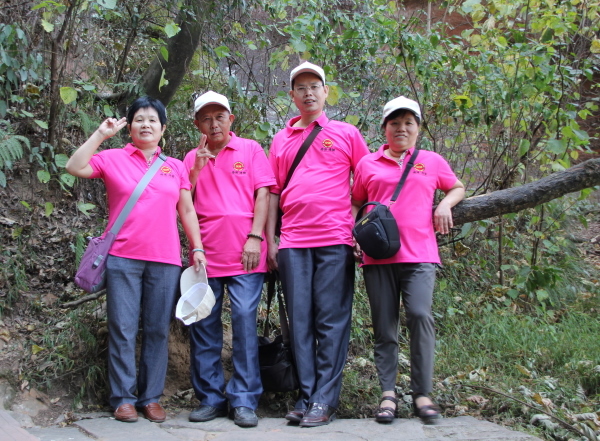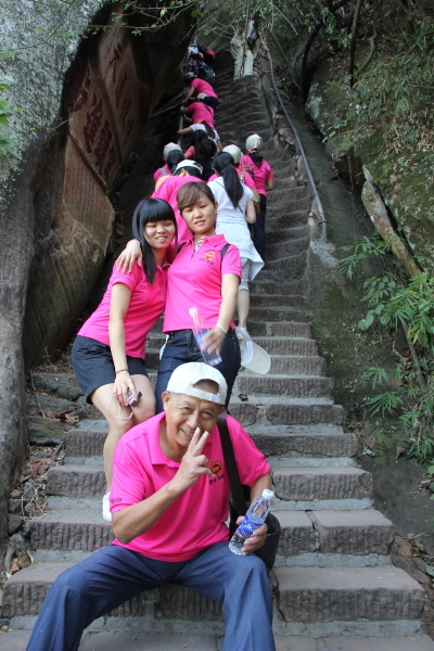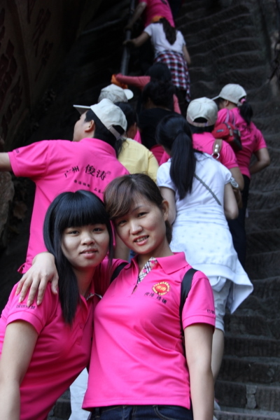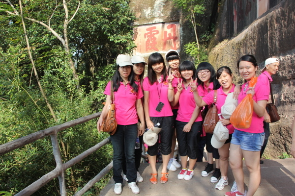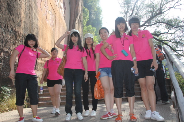 此次外出是一回一出的交接形式,也就是说,在丹霞山风景区一带,连续四天都活跃着俊涛公司的员工们。加上我们统一服饰,阵容很强大。一路上吸引了不少其他团队人员的目光。尤其是景区里的一些工作人员,突然好奇地问我说:“叔叔,你们不是前天刚来过吗?怎么又来了啊?”听我解释之后才恍然大悟,连说强大!