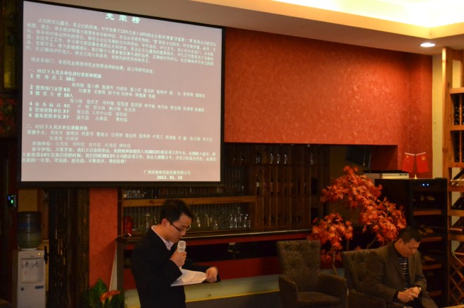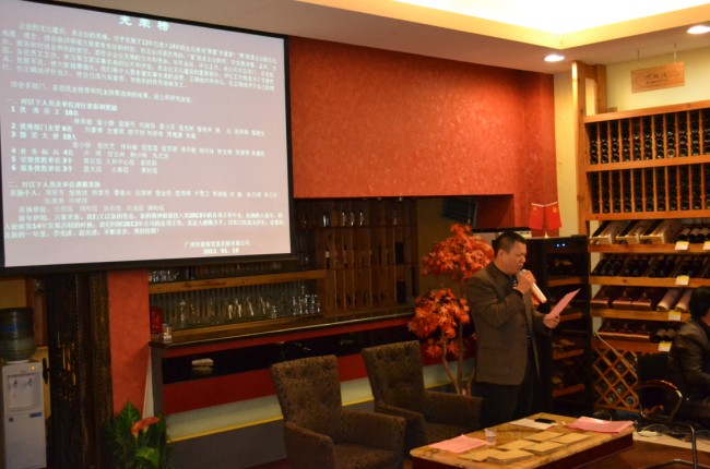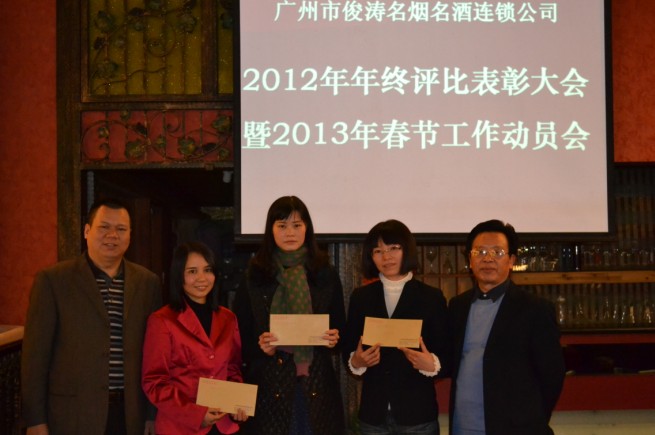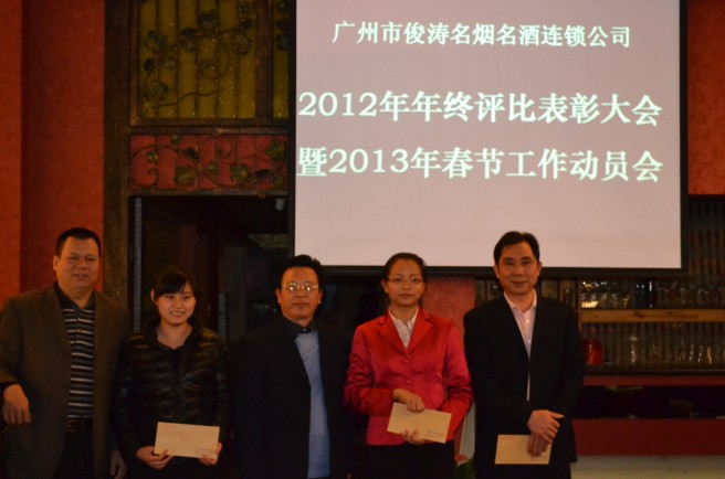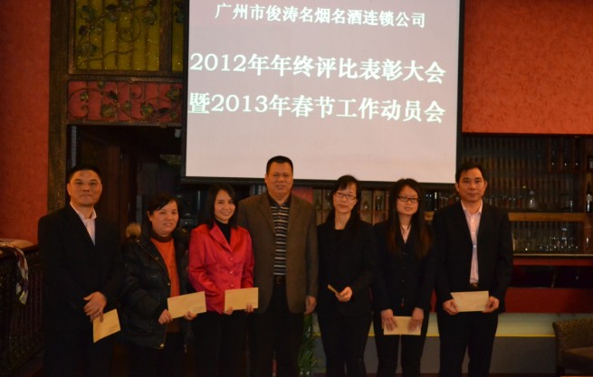 2013年1月12日,我司召开了2012年年终总结表彰大会及2013年春节动员大会。大会上,张董事长表示:企业文化建设是企业的灵魂,对于发展了13年已进入14年的企业来说 “厚重” 很重要 !“厚”就是企业文化底蕴、理念、综合意识等诸方面要有良好的积淀,而且必须是优秀的;“重”就是企业的质,即发展质量、品质、方向、服务和对社会所负的责任,要符合企业发展的方向和使命。年终总结、评比工作,是公司对各部门、各连锁店、各位员工工作、学习等方面实事求是的认可和评定;是企业文化建设的重要部分;评比工作就是为了发扬优点、克服不足,使大家健康成长。我们每个人要本着实事求是的态度,正确地对待评比;在正确地评价自己的同时,也正确地评价他人,是自己成为高素质、有抱负的优秀俊涛员工。