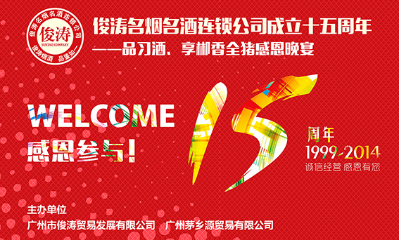 广州市俊涛名烟名酒连锁公司携手广州茅乡源贸易有限公司举办庆祝公司十五周年感恩酬谢活动!