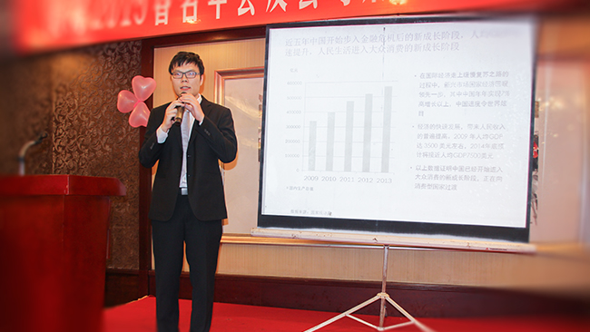 健涛企业管理公司副总经理周元(下图)与大家分析了目前行业的形态、以及目前面临的机遇挑战,发表了对公司酒优多连锁店的前景充满信心的专题演讲!