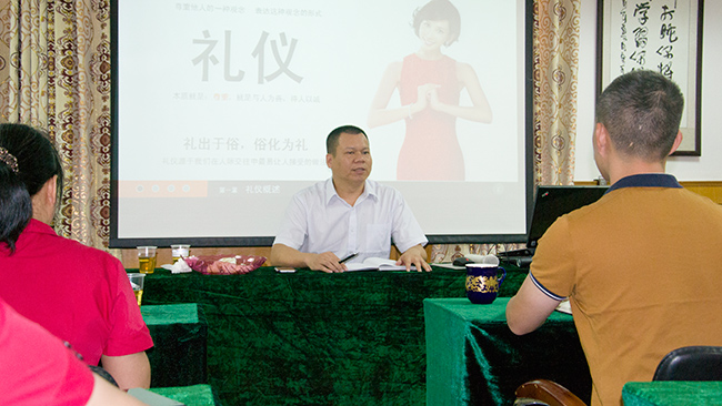 刘副总为大家进行日常销售、生活中应该注重的礼仪培训,总结分析中秋销售情况及第三季度工作内容