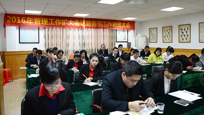 为总结2015年工作情况,规划2016年工作详情,调动公司春节销售积极性,2016年1月2日,我司于俊涛三楼会议室召开了一次2016年管理工作扩大会议暨春节动员大会。