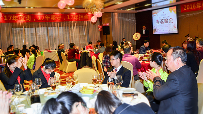晚会期间,我司也设立了抽奖以及娱乐游戏环节,精心准备了多份奖品,让在坐的每一位都参与其中,将现场气氛一次次的推入高潮。欢声笑语、谆谆教导、殷殷期望这些都编织成了俊涛独一无二的春茗会。在过去的一年中,公司的业绩不断进步,专业化团队也正逐步成型,这些都离不开公司管理团队及全体员工的耕耘和付出,离不开政府及消费者的支持与厚爱。2016年,我们满怀感恩、努力工作,继续全心全意的为广大消费者服务,再创佳绩!
