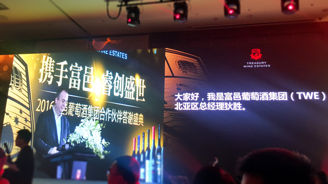 2016成都春季糖酒会举办期间,全球最大的葡萄酒运营商富邑集团于3月24日在成都丽思卡尔顿酒店举行了“携手富邑,睿创盛世”2016富邑葡萄酒集团合作伙伴答谢盛典。