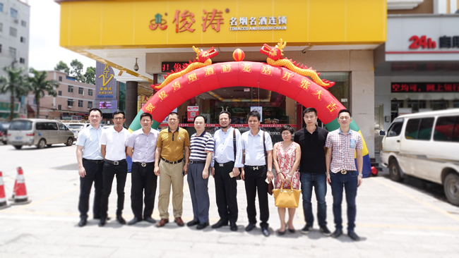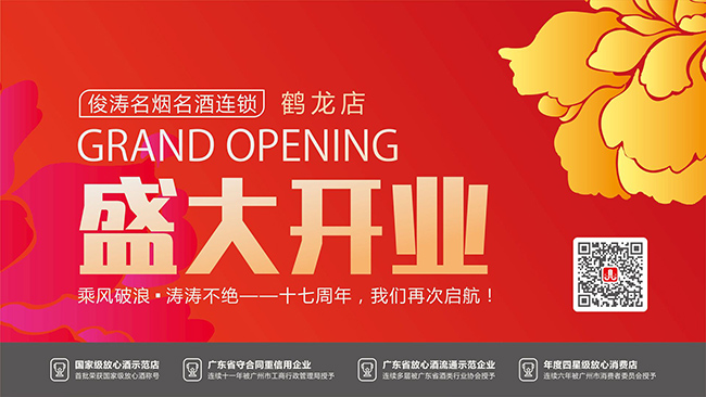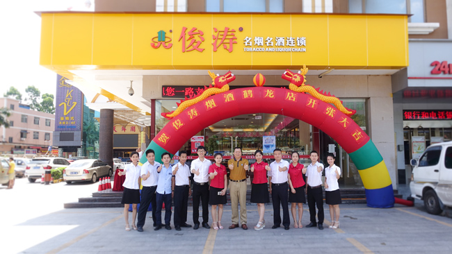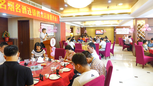6月18日午时,我司在鹤龙街天鲜阁举行鹤龙店开业庆典,庆祝俊涛名烟名酒连锁鹤龙店正式开业!白云区人大原副主任刘思成先生、广州市酒类行业协会钟秉雄会长、广东省饶平商会刘基青会长,《新食品》、《新快报》、《信息时报》、《老板报》媒体记者,饶平商会、鹤龙商会、白云区酒类行业协会以及俊涛长期合作供应商等嘉宾应邀参加活动。
