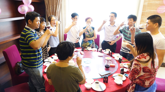 庆典上,在场人员齐举酒杯,共贺俊涛鹤龙店开业,一时间,现场气氛热烈,情意浓浓;大家兴致盎然,交谈甚欢。
