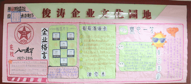 本期墙报主题:八一建军节、稻盛哲学、葡萄酒语录、夏日养生