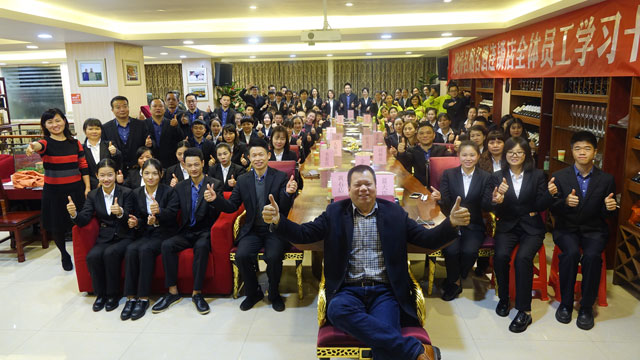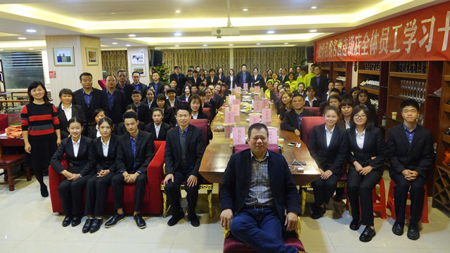 11月25日晚21点,在我司永泰酒窖隆重举行员工大会暨俊涛全体员工学习十九大精神。各门店同事陆续到场,现场一片欢声笑语、大家无拘无束、相互寒暄,如同回到了温暖的家。俊涛大家庭欢聚一堂,会场PPT上映射着“各位伙伴、欢迎回家”。虽然是在寒冷的夜里,但心也是暖暖的。