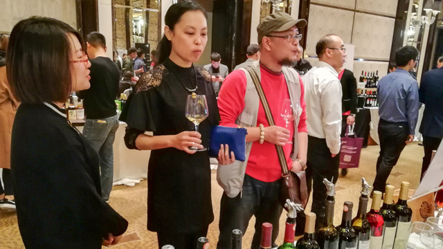 我们的同事正在细心给同行朋友讲解葡萄酒,瞧那专注的表情,满分有没有。