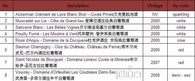 本次我们带来了最新8款卢瓦尔河谷葡萄酒,酒单如下: