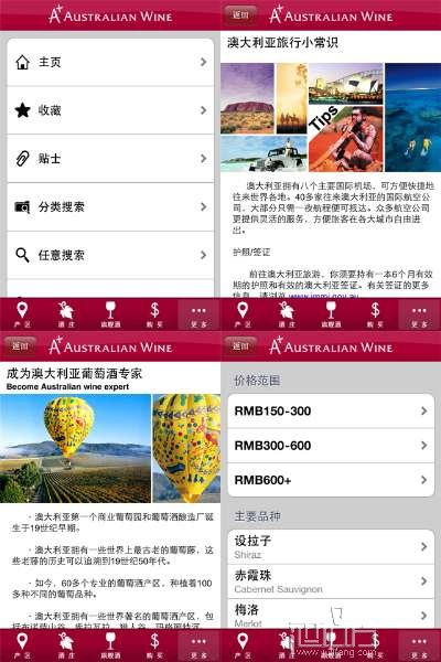 澳大利亚葡萄酒行业持续关注着中国市场的发展、挑战和机会,通过不断地提高酿酒技术和创新,为中国市场带来更多佳酿。而中国的消费者早已能得心应手地运用高科技手机为他们忙碌的日常生活带来帮助,iPhone APP就是这样一种特殊的途径为他们带来前所未有的体验,A+澳大利亚葡萄酒中文APP更是第一次为他们提供了独一无二的澳大利亚精品葡萄酒的视觉享受。