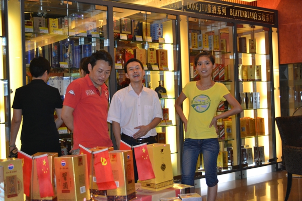 我司业务部詹经理(图中)与采购部卢经理(图右)与带领嘉宾们参观俊涛酒窖