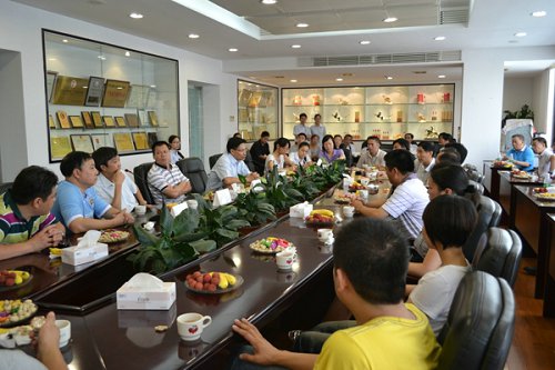 期间,举行了座谈会。广州市酒类专卖协会苏铭枢处长,黎处长及市酒协、白云区酒协秘书长,全体会员,厂家有关代表参加了座谈会。会上,杨董作了欢迎致辞及详细介绍了厂的有关历史与发展。白云区酒类专卖行业协会会长张建伟代表市酒协、白云酒协向厂家作了感谢发言。