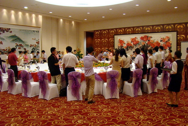 广州白云国际会议中心位于广州白云区白云文化公园附近,出了地铁口就一眼就看到了宏伟、宽阔、壮观、颇具现代都市建筑特色的主会场馆。我怀着激动的心情信步走进会场,顺着提示路线轻而易举地顺利找到了会议场馆珠江厅。会议厅的门口,公司的工作人员已经早早在那恭候了,签到之后就径直走进大厅。虽然一切都是在意料之中,然而,会场里面的豪华景观和俊涛公司酒类产品的展示布置,依然让我眼前一亮!