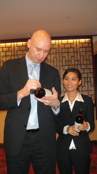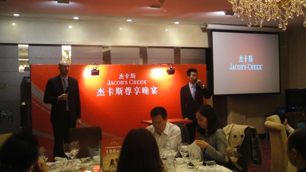 20012年11月24日晚,广州俊涛公司与保罗力加公司联合举办的杰卡斯品鉴晚宴在珠江新城西塔友谊商店5楼香港桃源酒家举行。我司张健伟董事长、张海燕总经理、采购部卢辉经理、营运部詹云海经理出席了本次品鉴晚宴。当晚晚宴品鉴葡萄酒品种:杰卡斯臻选系列干红。