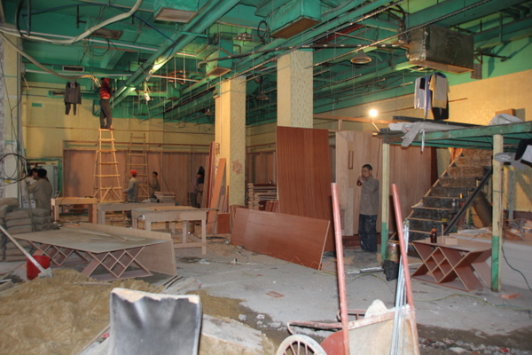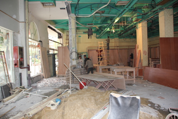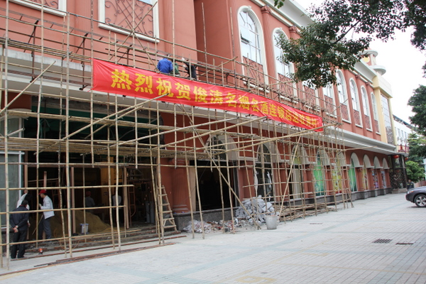 铺面紧锣密鼓地进行室内外装修装潢中。