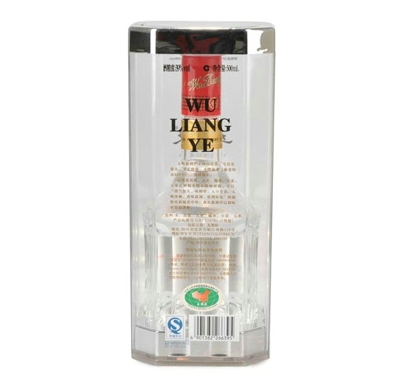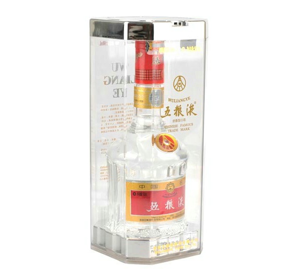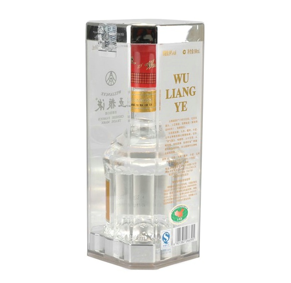 全新包装的五粮液采用呈八面型的全透明的环保材料PET聚酯盒,盒口是一个一次性拉断防伪封盖。透过聚酯盒,能清晰地看到盒内的五粮液酒瓶及五粮液酒。酒瓶的商标和颈标是采用意大利“金膏烧印”技术烧印而成,与瓶身融为一体;厂徽标记是运用德国的“模内转移”新技术,比传统做法更闪亮,更富立体感;瓶盖则是引进美国先进的“3M回归反射”高隐秘防伪技术。新包装由外到内的三重防伪技术使中国名酒五粮液的防伪水平达到了国际最新水准,再加上内外透明包装形成的强烈立体感,使五粮液比过去更显豪华和精美。