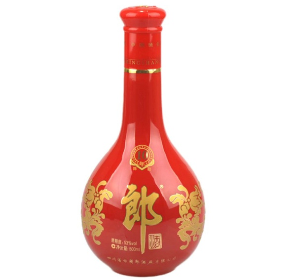 十年红花郎的瓶形经105道工艺精心打磨,特别引进英国低温红,24K砂金烧花,24K亮金压边。瓶形线条流畅柔美,张弛有度。纯正红色,亦含蓄亦奔放,完美表现了十年红花郎酒的非凡品味。